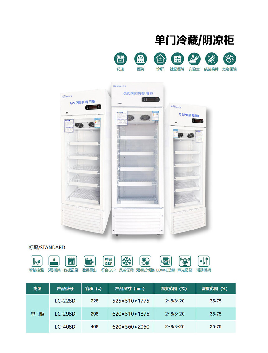 華美單門醫用疫苗冷藏冰箱試劑冷藏柜藥品陰涼柜LC-98D