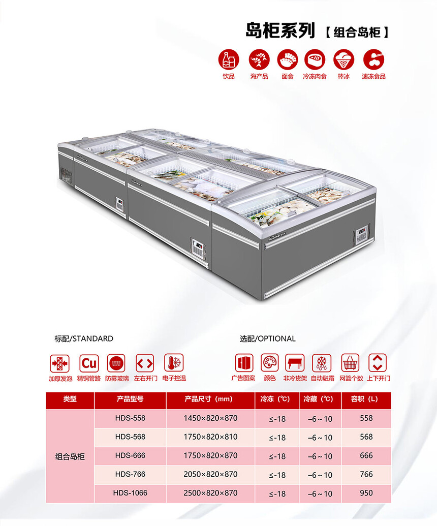 熱線產(chǎn)品:風(fēng)幕柜 、 高檔玻璃門柜 、 自動售貨機 、 肉柜 、 熟食柜 、 冷凍柜 、 島柜 、 鮮花保險柜 、 冰柜