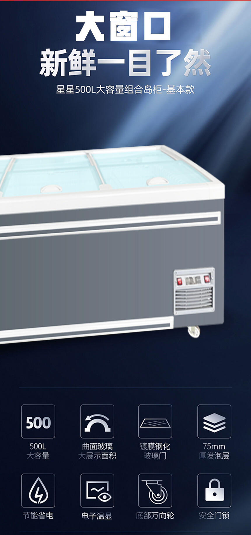 華美玻璃門冷凍深底島柜HD-798