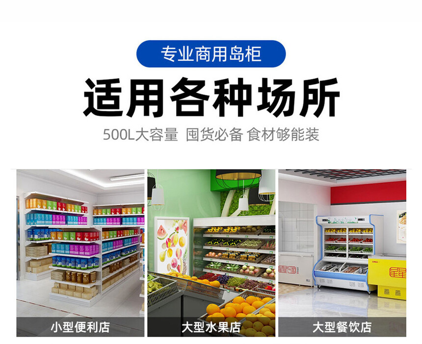 華美島柜超市臥式玻璃門銅管冷藏大容量冷凍展示柜冰柜雪糕柜商用