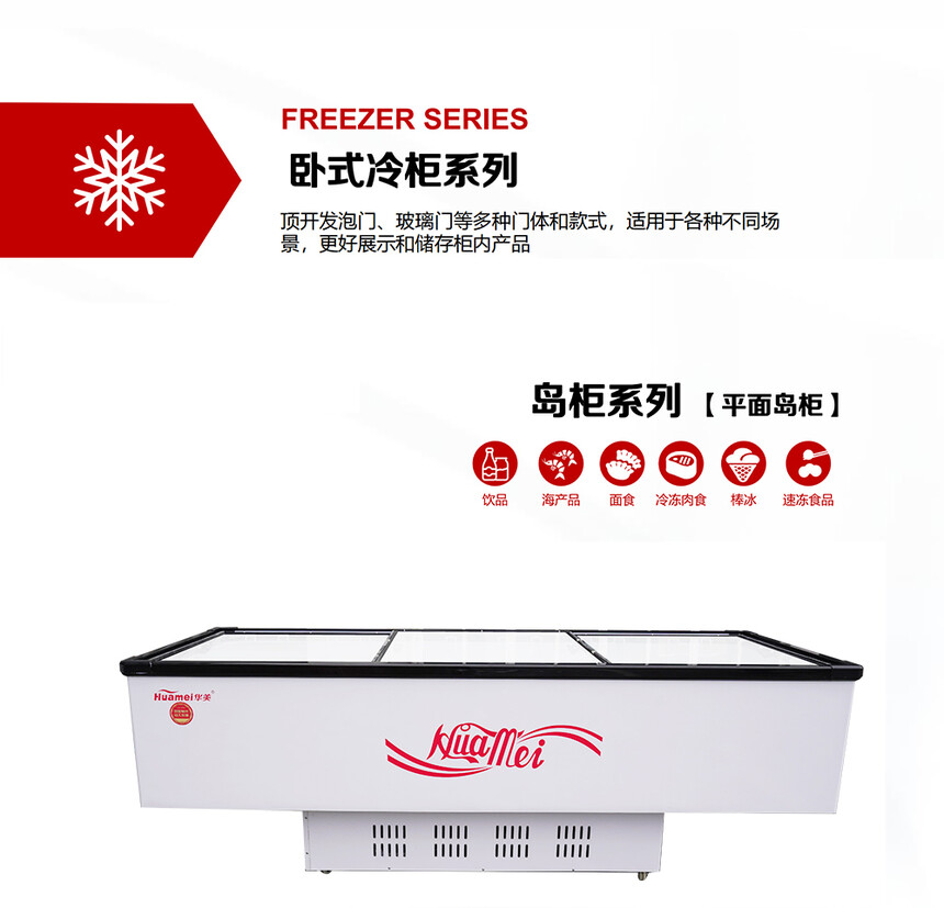 華美玻璃門(mén)冷凍深底島柜HD-798